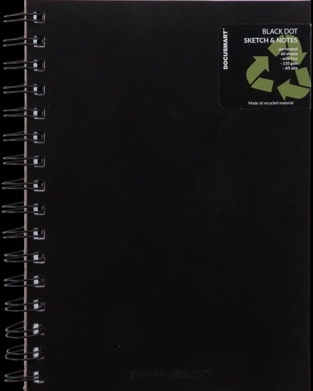 Sort A5 skitseblok med spiral i ryg.110 g papir.60 ulinjeret ark.