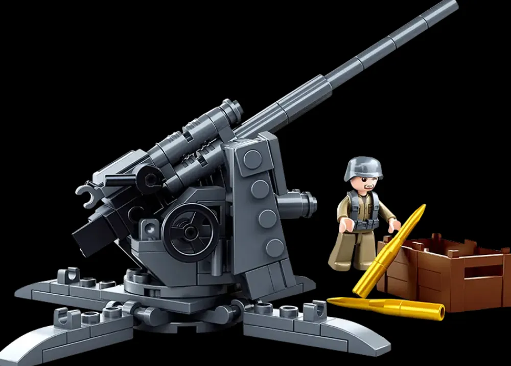 Sæt med byggeklodser, der tilsammen danner et tysk WWII-maskingevær.Geværet kan roteres manuelt.Der medfølger en figur, en kasse samt to stk. ammunition.Sættet kommer med en letforståelig brugervejledning.Sættet består af i alt 115 dele.Anbefalet alder: 6-10 år.ADVARSEL!Fare for kvælning – produktet indeholder små dele, og er ikke egnet til børn under tre år.Serie: Army.