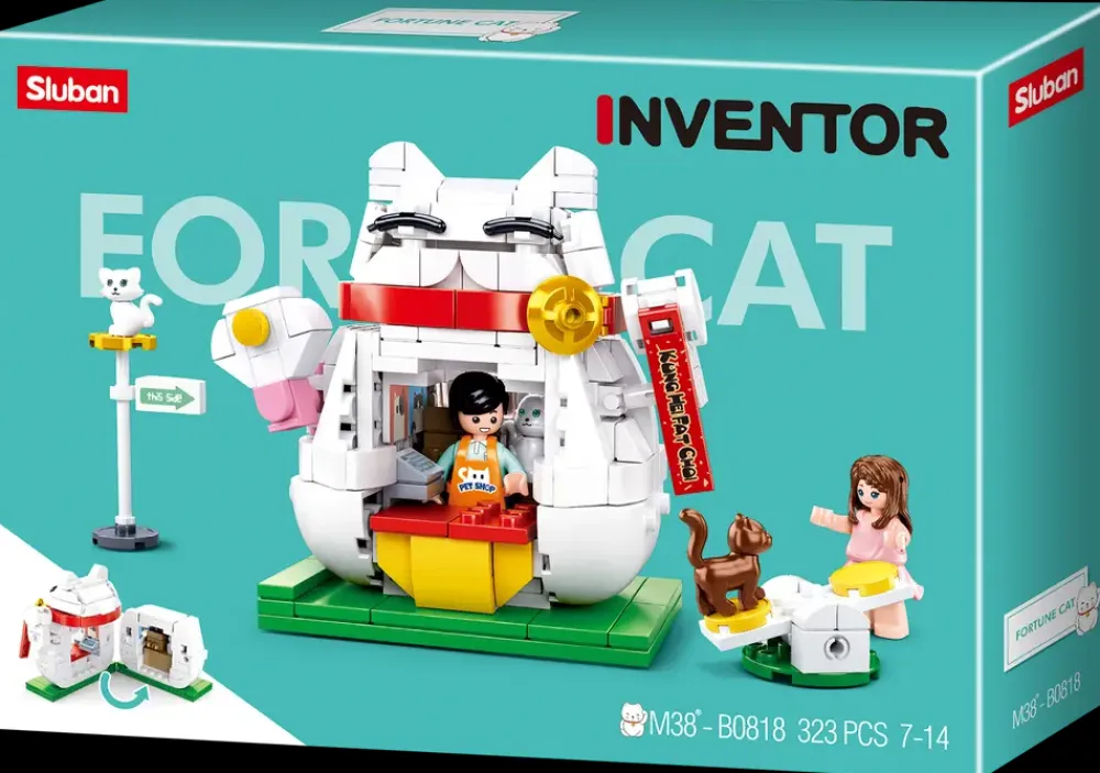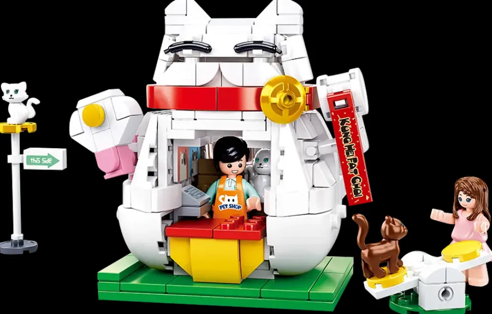 Sæt med byggeklodser, der tilsammen danner en lille butik der er formet som en vinkekat.Der medfølger 2 minifigurer, 2 katte og andet tilbehør.Samlesættet kommer desuden med en letforståelig brugervejledning.Sættet består af i alt 323 dele.Anbefalet alder: 7-14 år.ADVARSEL!Fare for kvælning – produktet indeholder små dele, og er ikke egnet til børn under tre år.