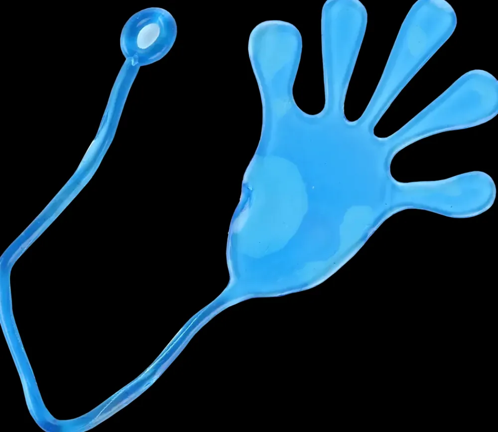 Klæbende slimhånd til mange timers leg. Den klæbende hånd kommer i 4 forskellige farver: blå, gul, grøn og rødDet er ikke muligt at vælge farve i webshoppen.