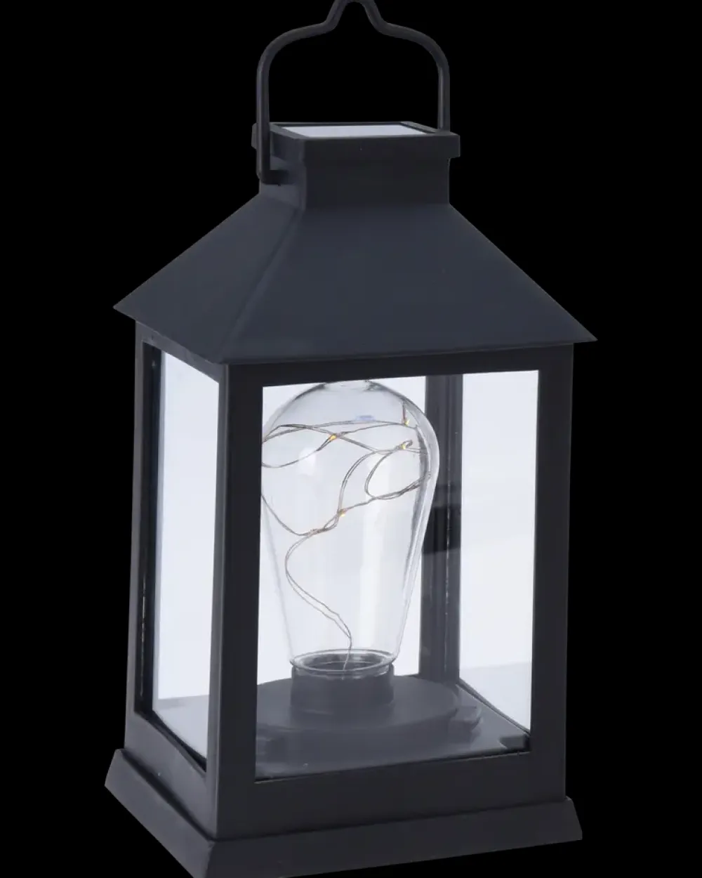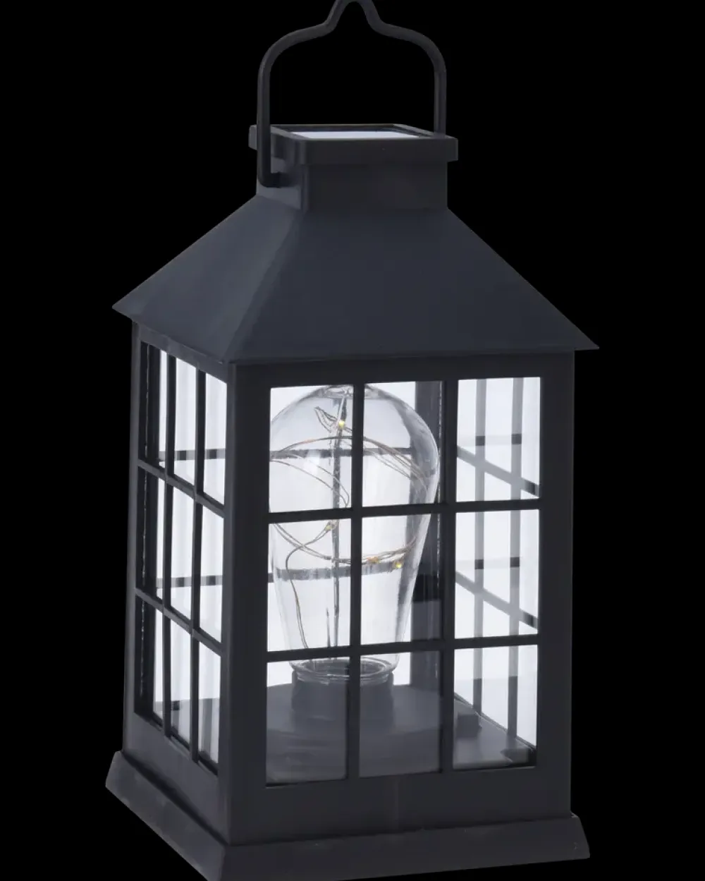 Smart solcellelampe i sort metal, der fås i assorterede udgaver. LED-lyset i midten af lampen er udformet som en retro glødepære, hvilket giver en flot effekt. Lanternen har indbygget hank, så den er nemt at flytte rundt på. Lanternen har amorf solcellepanel.Batteri: 1 x AA 1,2V 300MaH NI-MH.