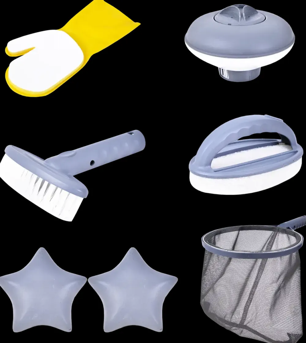 Hold dit spa rent med et vedligeholdelsessæt. Sættet indeholder 6 dele. Indeholder:1 x Løvnet2 x Børster 1 x Dispenser1 x Svamp, som absorberer overfladesnavs som kropsolier, make-up og pollen etc.1 x Rengøringshandske
