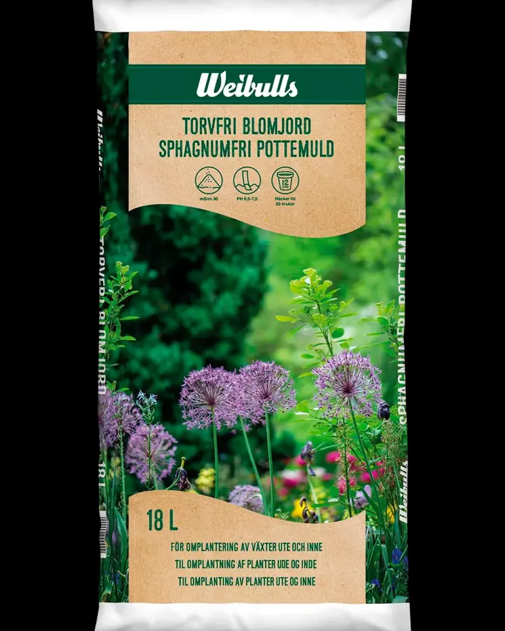 Weibulls Sphagnumfri Pottemuld er velegnet til ny- og omplantning i krukker og blomsterkasser, både indendørs og udendørs. Indeholder leca og biogødning, som forbedrer jordens struktur og giver optimale vækstbetingelser. Jorden har en grovere struktur end såjord og et højere gødningsindhold, hvilket gør den ideel til almindelige planter, der kræver en neutral pH-værdi. Perfekt til både større stiklinger og etablerede planter.