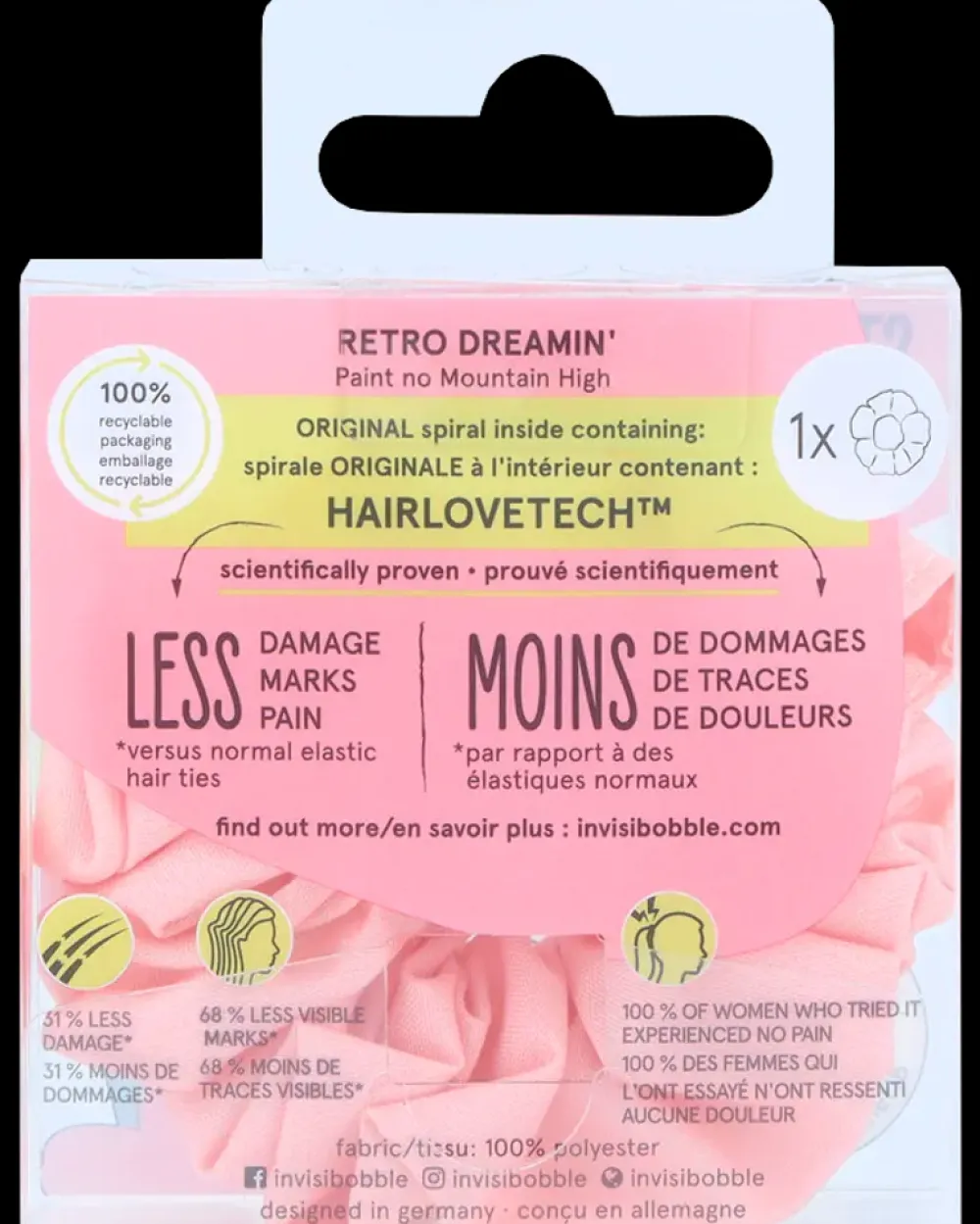 Sprunchie er en retro hårelastik med spiralform.Sprunchien sidder godt fast uden at efterlade mærker i håret.invisibobble-sprunchien er designet til at være mindre skadende for håret og mere behagelig end almindelige elastikker.Denne sprunchie kommer i en romantisk lyserød, der passer perfekt ind i forårs- og sommergarderoben hvor pastelfarver er yderst populære.