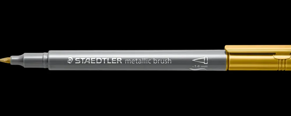 Staedtler® Metallic brush marker med penselspids.Kan anvendes på mørkt og hvidt papir eller karton.Ideel til scrapbog, tegning, dekoration eller til at kreere bord- eller lykønskningskort.Skal hverken pumpes eller rystes.Kan nemt aftørres på overflader som; glas, vinduer og spejle.Farve: 10 assorterede.Stregbredde: 1 til 6 mm.
