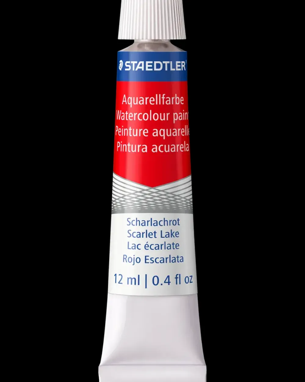 Staedtler® Akvarelmaling.Høj farvepigmentering i brillante farver.Blød konsistens og farverne er lette at blande.Velegnede til akvarelpapir.Tube á 12 ml.