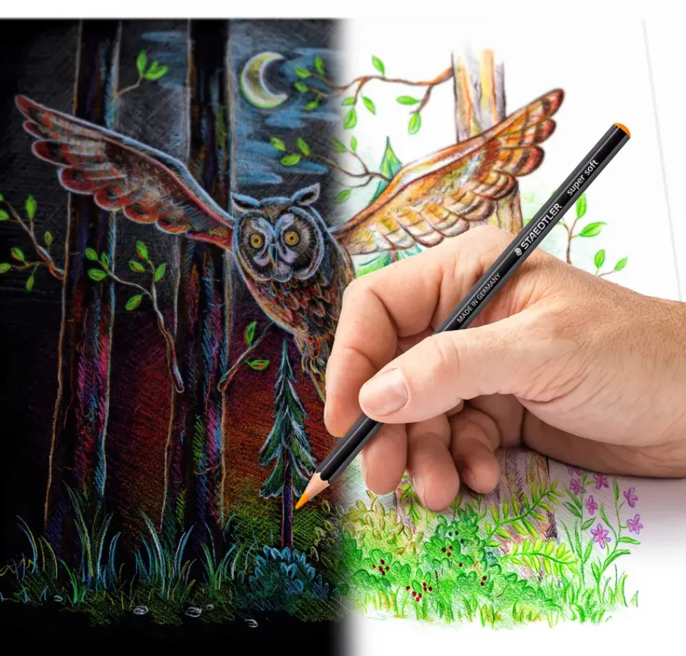 Staedtler® Super soft kvalitets farveblyant i klassisk sekskantet form med super blød mine, der giver ekstra høj dækkeevne.Skab fantastiske effekter på både hvidt og sort papir.Træ fra certificerede, bæredygtigt forvaltede skove.Made in Germany.