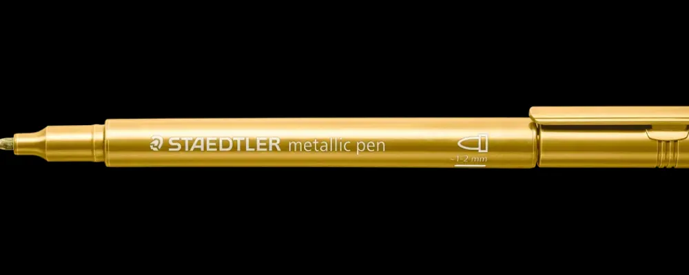 Staedtler® Metallic pen.Til skrivning, tegning, dekoration, scrapbog m.m.Farven kan ses på mørkt papir og karton.Farve: Guld, sølv og hvid.Stregbredde: 1 til 2 mm.