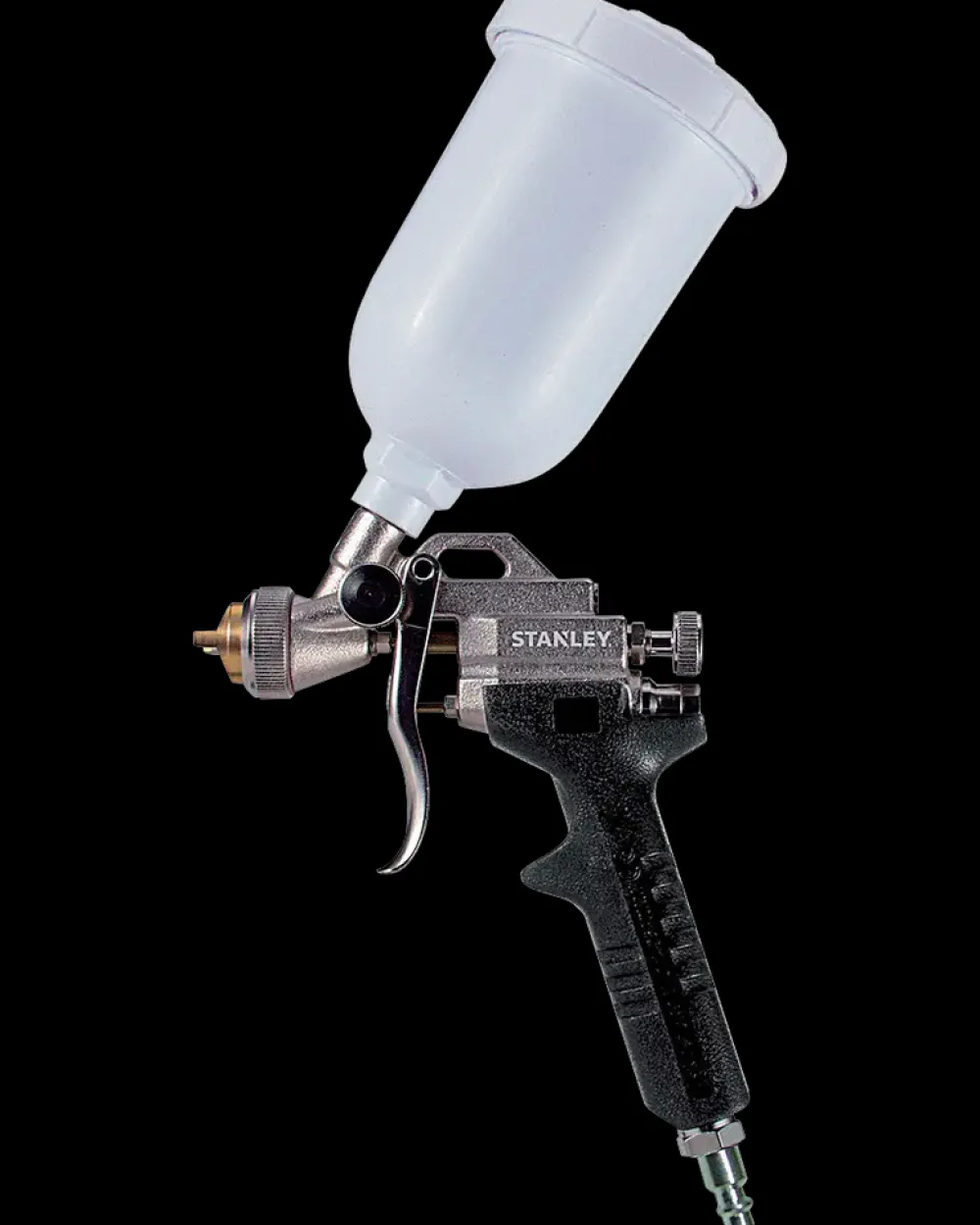 Lavtryks malersprøjtepistol fra Stanley med 0,5 mm dyse til små objekter og detaljer.Velegnet til vandbaserede malinger.