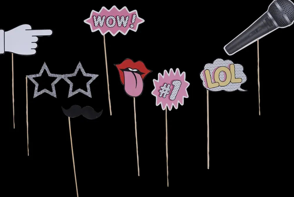 Pynt op til festen og tag selfies med disse sticks, med forskellige motiver.Pakken indeholder 10 blandede motiver.