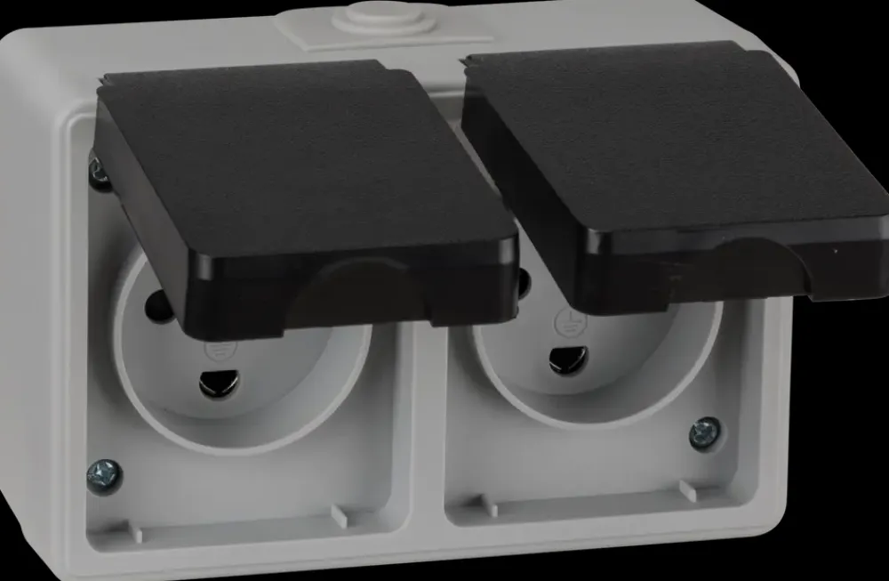 Stikkontakt dobbelt IP54 stænktæt| Stænktæt Og Udendørs