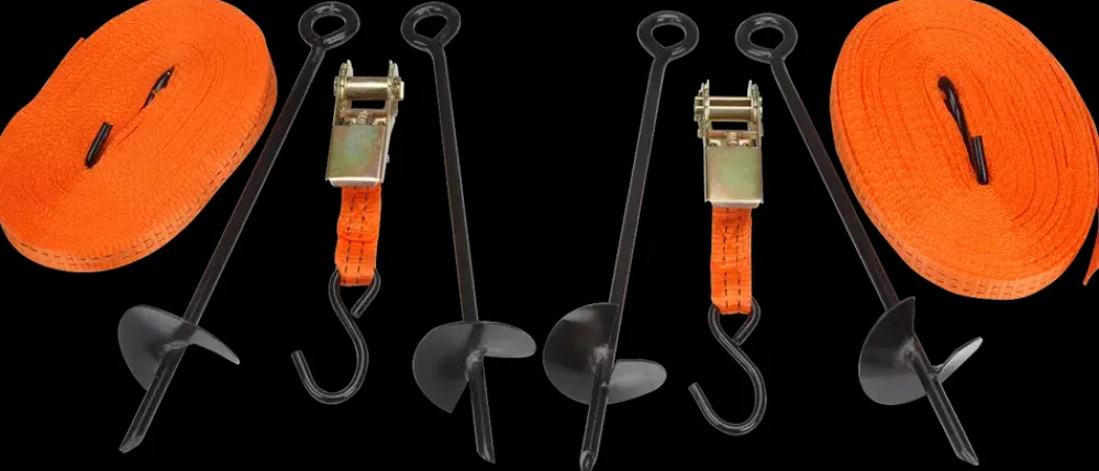 Stormsikring til Partytelte.Sættet består af:4 stk. stormpløkker/jordspyd 37 cm.2 stk. bagageremme 2,54 cm x 13,5 m med kroge. Brudstyrke 700kg.2 stk. skraldeopstrammer.
