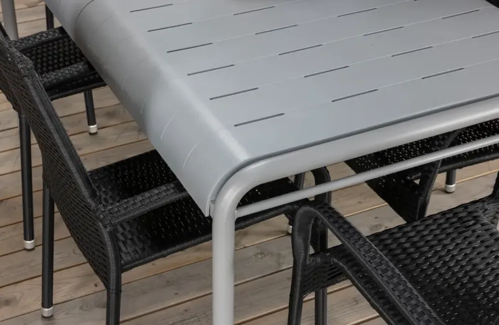 Dette havebord er velegnet til både indendørs og udendørs brug. Med målene H76,5 x B90 x L153 cm tilbyder det god plads til familie og venner. Bordet er fremstillet i et robust materiale med en grå finish, der passer til både moderne og klassiske omgivelser.Den lette konstruktion gør det nemt at flytte, mens det samtidig er modstandsdygtigt over for vejrpåvirkninger. Overfladen er let at rengøre, så snavs og spild hurtigt kan fjernes. Med sin stabile konstruktion og stilrene udtryk egner bordet sig til enhver spiseplads – både ude og inde.