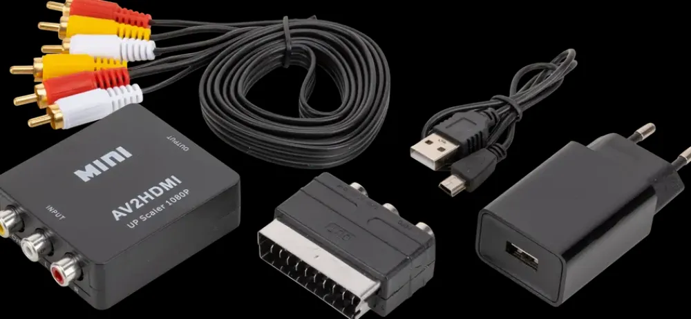 RCA/Scart til HDMI omformer, er en universel omformer, til brug fra analoge input og HDMI 720p/1080p (60Hz) digital output.Den leverer den skarpeste og mest realistiske HD-gengivelse.Gense dine VHS/analoge minder i digital udgave.Plug and play.Understøtter PAL, NTSC 3.58, NTSC 4,43, SECAM, PAUM og PAL/N TV-formater inputs.Indeholder: 1 stk. AV input til HDMI omformer.1 stk. Scart Adapter.1 stk. AV kabel.1 stk. Mini USB kabel.1 stk. 230 V USB lader.