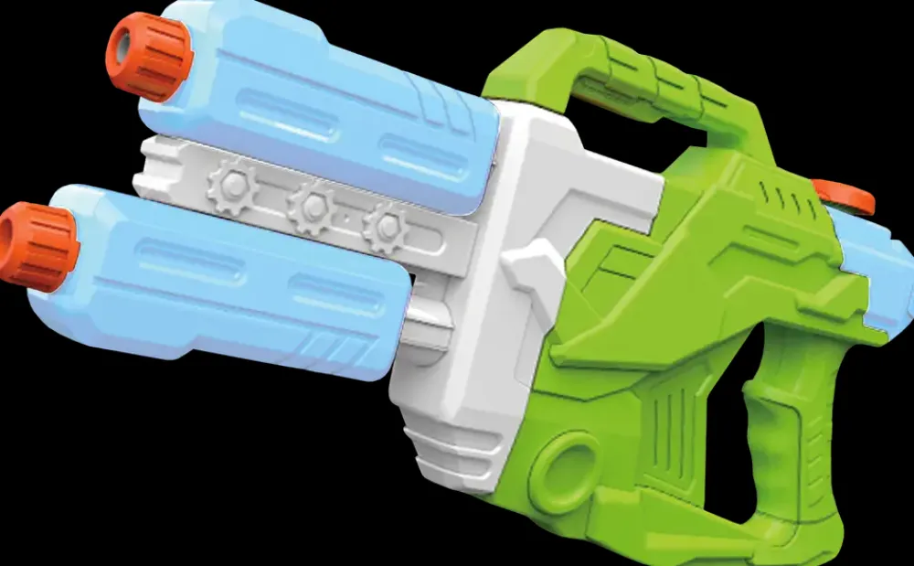 Det ultimative vandgevær med en kapacitet på hele 2400 ml.Med dette gevær kan man holde vandkampen kørende i rigtig lang tid, inden der skal genopfyldes.Sælges i 2 assorterede farvekombinationer. Bemærk, at der ikke kan vælges farve ved køb i webshoppen.ADVARSEL!Fare for kvælning – produktet indeholder små dele, og er ikke egnet til børn under tre år.
