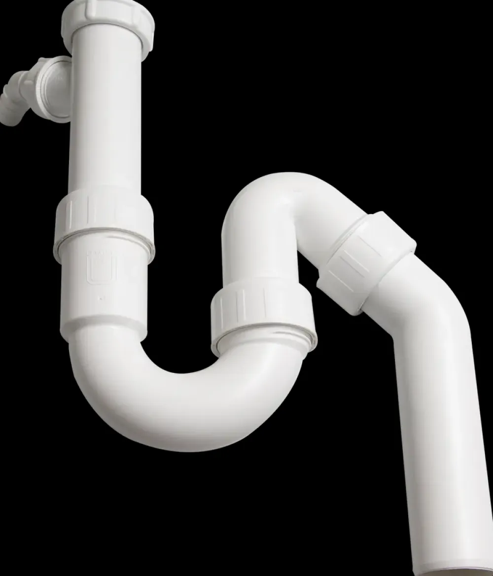 Vandlås med studs til vaske- og opvaskemaskine. Benyttes som afløb fra stålvask. Selvrensende.