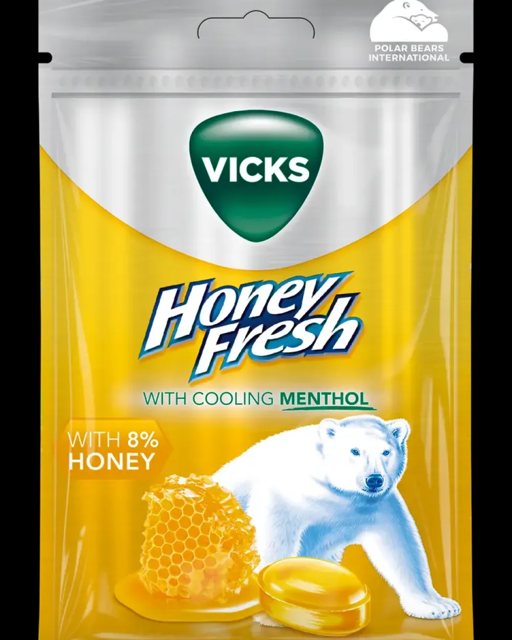 Vicks Honey Fresh halspastiller med den velkendte søde smag af honning.