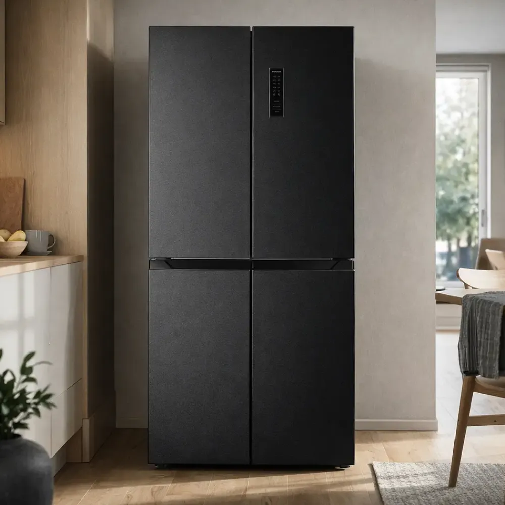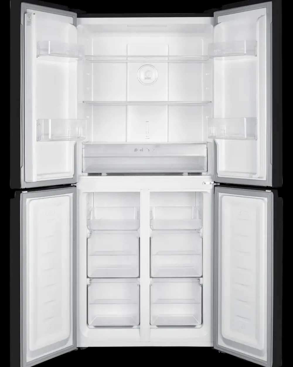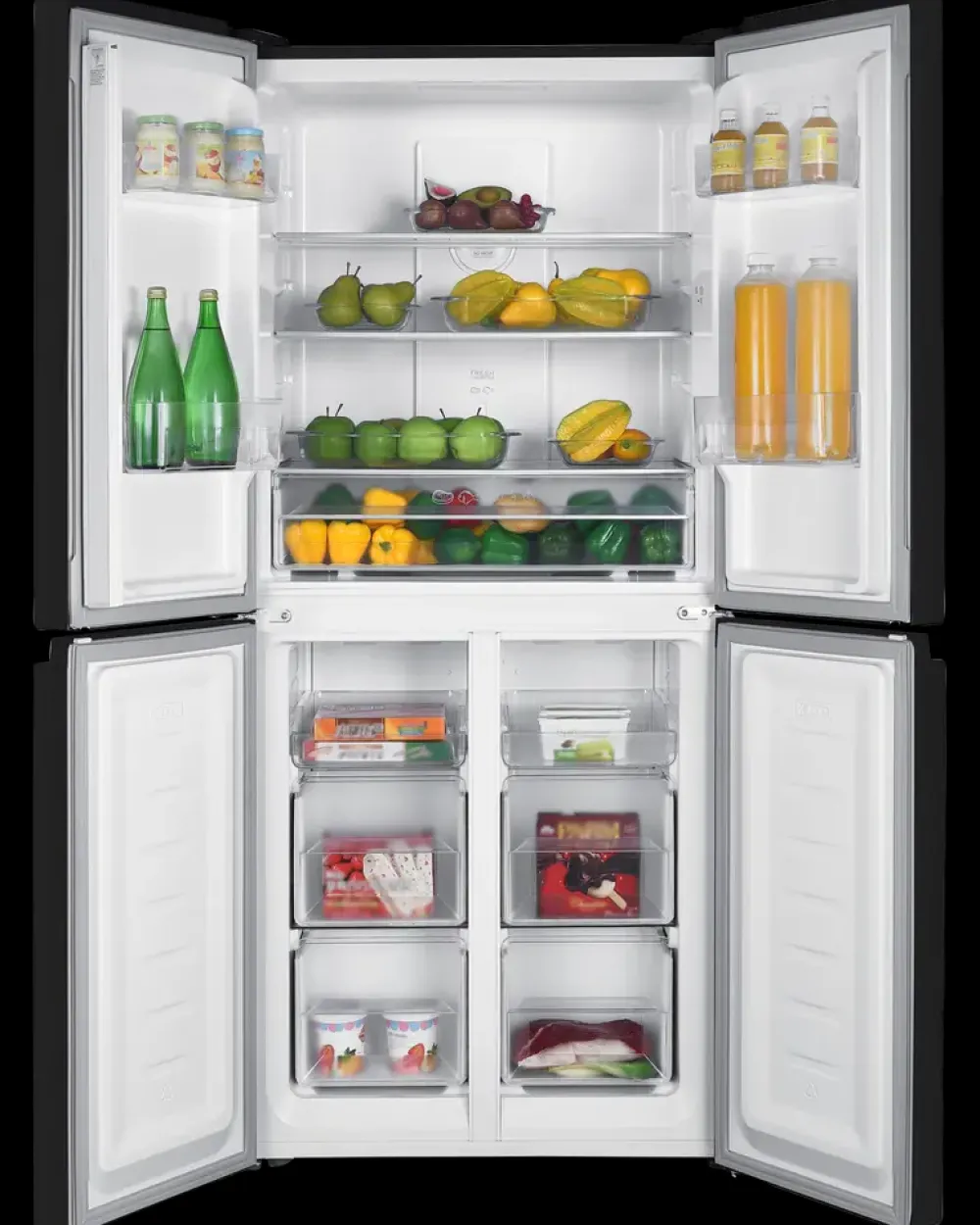 Stilrent køle-fryseskab med 4 låger og en samlet kapacitet på 362 liter. Skabet er udstyret med Total No Frost-system, der sikrer en jævn fordeling af kold luft via multi-airflow-teknologi, hvilket forhindrer isdannelse og holder maden frisk i længere tid.Det eksterne digitale display giver nem adgang til temperaturindstillinger og funktioner som ECO-tilstand og Super Freeze. Den fleksible crisper-box har en variabel temperaturzone mellem 2-8°C, hvilket giver optimal opbevaring af forskellige madvarer.For ekstra sikkerhed er der en dør-alarm, der giver en lydadvarsel, hvis dørene står åbne for længe. Kapacitet: 362 L.Kølerkapacitet: 237 L.Fryserkapacitet: 125 L.Total No Frost-system for jævn temperatur.Digitalt display med ECO- og Super Freeze-tilstand.Fleksibel crisper-box (2-8°C).Dør-alarm advarer ved åbne døre.Aftagelige hylder og skuffer for nem rengøring.