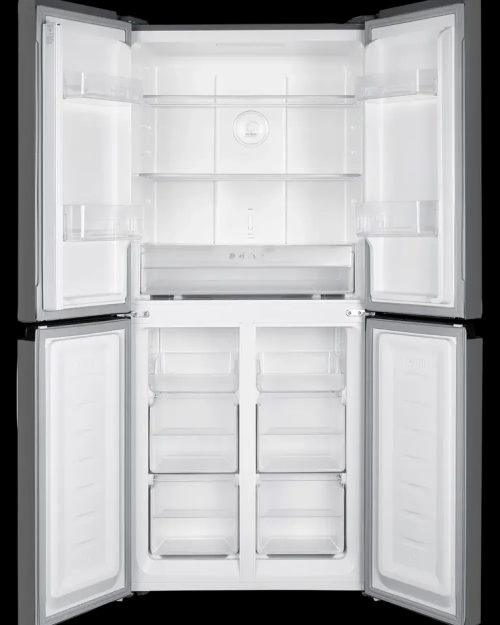 Stilrent køle-fryseskab med 4 låger og en samlet kapacitet på 362 liter. Skabet er udstyret med Total No Frost-system, der sikrer en jævn fordeling af kold luft via multi-airflow-teknologi, hvilket forhindrer isdannelse og holder maden frisk i længere tid.Det eksterne digitale display giver nem adgang til temperaturindstillinger og funktioner som ECO-tilstand og Super Freeze. Den fleksible crisper-box har en variabel temperaturzone mellem 2-8°C, hvilket giver optimal opbevaring af forskellige madvarer.For ekstra sikkerhed er der en dør-alarm, der giver en lydadvarsel, hvis dørene står åbne for længe. Kapacitet: 362 L.Kølerkapacitet: 237 L.Fryserkapacitet: 125 L.Total No Frost-system for jævn temperatur.Digitalt display med ECO- og Super Freeze-tilstand.Fleksibel crisper-box (2-8°C).Dør-alarm advarer ved åbne døre.Aftagelige hylder og skuffer for nem rengøring.