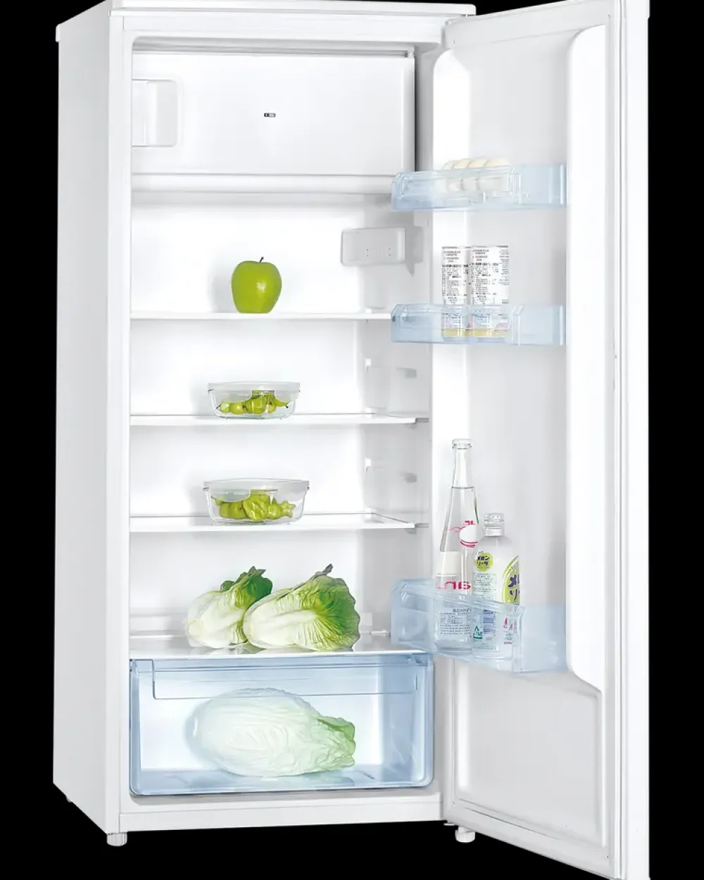 Køleskab fra Wasco med 14 liters integreret frysesektion og vendbare døre. Køleskabet er indrettet med 4 hylder og en grøntsagsskuffe, samt 3 hylder i lågen til drikkevarer m.m. Køle/fryseskabet er beregnet til brug ved en omgivelsestemperatur på mellem 16°C og 38°C.3 års garanti.
