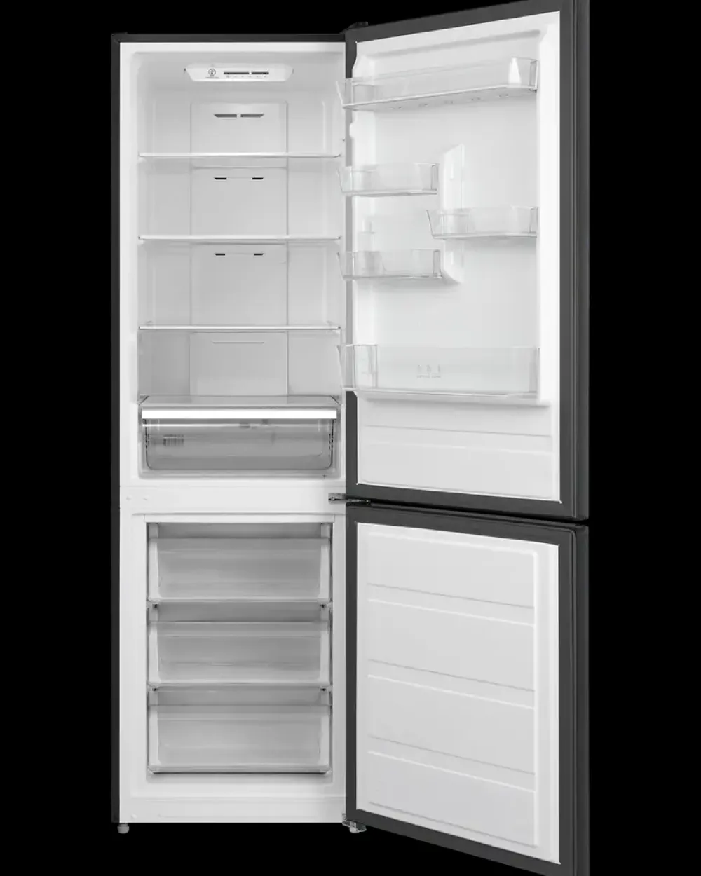 Køle/fryseskab fra Wasco med en samlet volumen på 310 liter, fordelt på en stor køledel og en rummelig frysesektion i bunden. Modellen har vendbare døre, så placeringen kan tilpasses forskellige køkkenløsninger. Kølesektionen rummer flere glashylder, en bred grøntsagsskuffe og dørhylder med plads til høj flaskestørrelse. LED-belysningen giver et klart overblik over hele rummet.Frysesektionen har ****-mærkning og består af tre transparente skuffer, som gør det let at organisere frostvarer. Total No Frost-funktionen reducerer isdannelse og mindsker behovet for afrimning, mens Super Cool-funktionen hurtigt nedkøler nye madvarer. Skabet er beregnet til brug ved omgivelsestemperaturer fra 10°C til 38°C.For øget sikkerhed ved jordforbindelse kan en adapter købes på varenr. 1888.Mål: H. 188 × B. 59,5 × D. 63 cm.Samlet volumen: 310 liter (køl 224 liter / frys 86 liter).Indfrysningskapacitet: 3,9 kg/24 t.