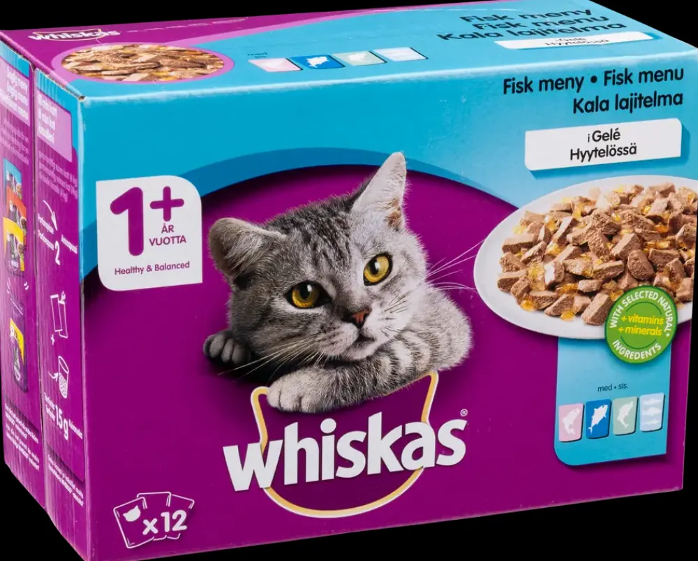 Whiskas Fiskmenu 1 år+ 12 x 85 g| Hundefoder, Kattemad Og Godbidder